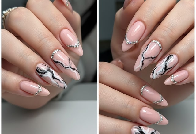 2️⃣ Во-вторых, для создания роскошного маникюра часто применяются дополнительные элементы декора. Самые популярные дизайны ногтей выполняются с использованием кристаллов Сваровски, золотой и серебряной фольги, инкрустированием драгоценными камнями и жемчугом.