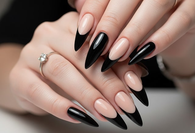 - Сочетание черного и белого. Это классическое сочетание, которое никогда не выйдет из моды. Черно-белый маникюр выглядит стильно и строго, подходит к любому образу.
