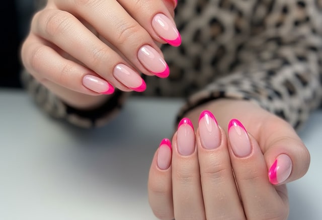 Ногти ярко-розового цвета разбавьте несколькими полутонами розового, чтобы создать плавный переход на ногтях. Начните со светлого у основания ногтя и потихоньку переходите к более насыщенному к кончику.