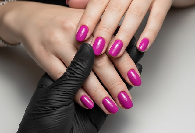 Покройте ногти матовым лаком для получения модной бархатистости. Ярко розовый маникюр на короткие ногти с шероховатой отделкой будет смотреться современно и особо привлекательно.