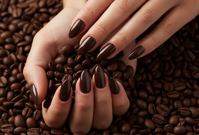 Маникюр с коричневым цветом представлен богатой палитрой от светлых оттенков кофе и карамели до глубоких темно-шоколадных и бургундских. Эта разнообразность позволяет выбрать именно тот оттенок коричневого, который подходит к любому тону кожи и дополняет осенний или зимний гардероб.
