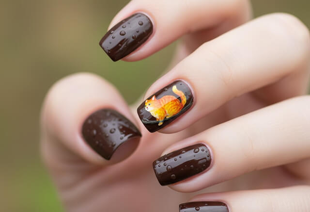 Интересно, что маникюр с коричневым лаком стал особенно популярным благодаря своей способности к преображению. Этот цвет может быть как нейтральным и строгим, так и выразительным и модным, в зависимости от выбранного оттенка и дизайна. Он гармонично вписывается как в деловой стиль, так и в вечерний образ, создавая завершенный и стильный лук.