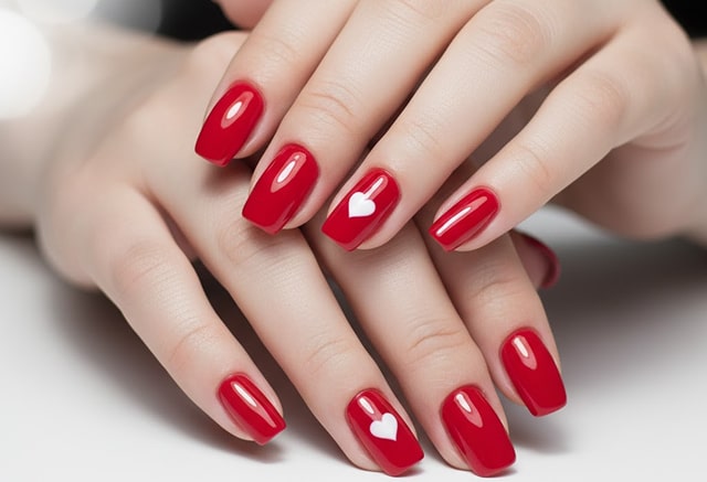 2. Классический красный. Этот цвет всегда ассоциируется с зимними праздниками и считается классикой зимнего маникюра. Красный цвет привлекает внимание и выглядит очень стильно и эффектно.
